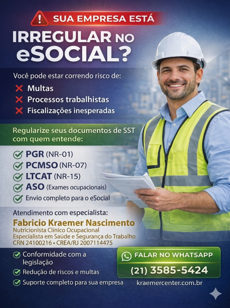 Home Assista ao nosso informativo sobre a nova NR1 - Riscos Psicossociais." Agende o seu exame Prezado(a) cliente, Preencha os dados abaixo referente ao colaborador que fara o exame desejado: * Horário de atendimento 08:00 até as 12:00* * Laboratório das 07:00 até as 11:00* Pedimos que preencha os dados abaixo com as informações necessarias para montar seu ASO dentro das exigencias das normas em vigor: Nome da Empresa CNPJ da Empresa E-mail da Empresa Telefone da Empresa Nome do Funcionário Telefone do Funcionário CPF Matricula do Esocial - SST (Caso não tenha colocar 000 e enviar depois) Data de Nascimento Informe o Cargo/Função que vai trabalhar e o setor (Pergunte ao RH para ter certeza e diga que é para colocar no ASO de acordo ao PCMSO da Empresa) Tipo de Exames Desejado AdmissionalDemissionalPeriódicoRetorno ao TrabalhoMudança de Risco Nos Casos de exames Periodico, Demissional, Retorno ao Trabalho e Mudança de Risco, peço informar a Data de Admissão. Caso o seu exame seja Admissional informar a data que esta preenchendo este pedido ou verificar com o RH qual data ficará definida. Data que deseja realizar o exame Em qual unidade deseja fazer o exame Unidade Centro/RJUnidade Bangu/RJ Em caso de exames complementares, informe: Services
